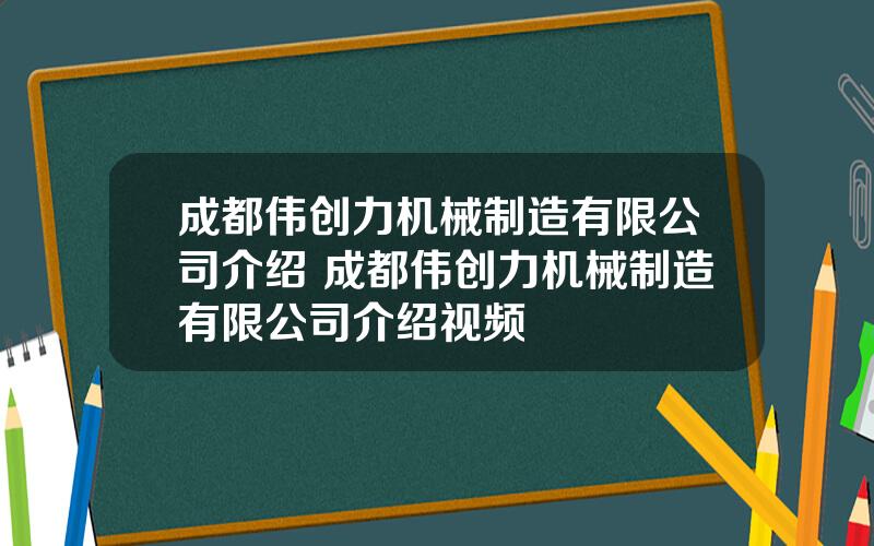 关于成都伟创力机械制造有限公司介绍,成都伟创力机械制造有限公司介绍视频的介绍到此结束,希望对大家有所帮助。