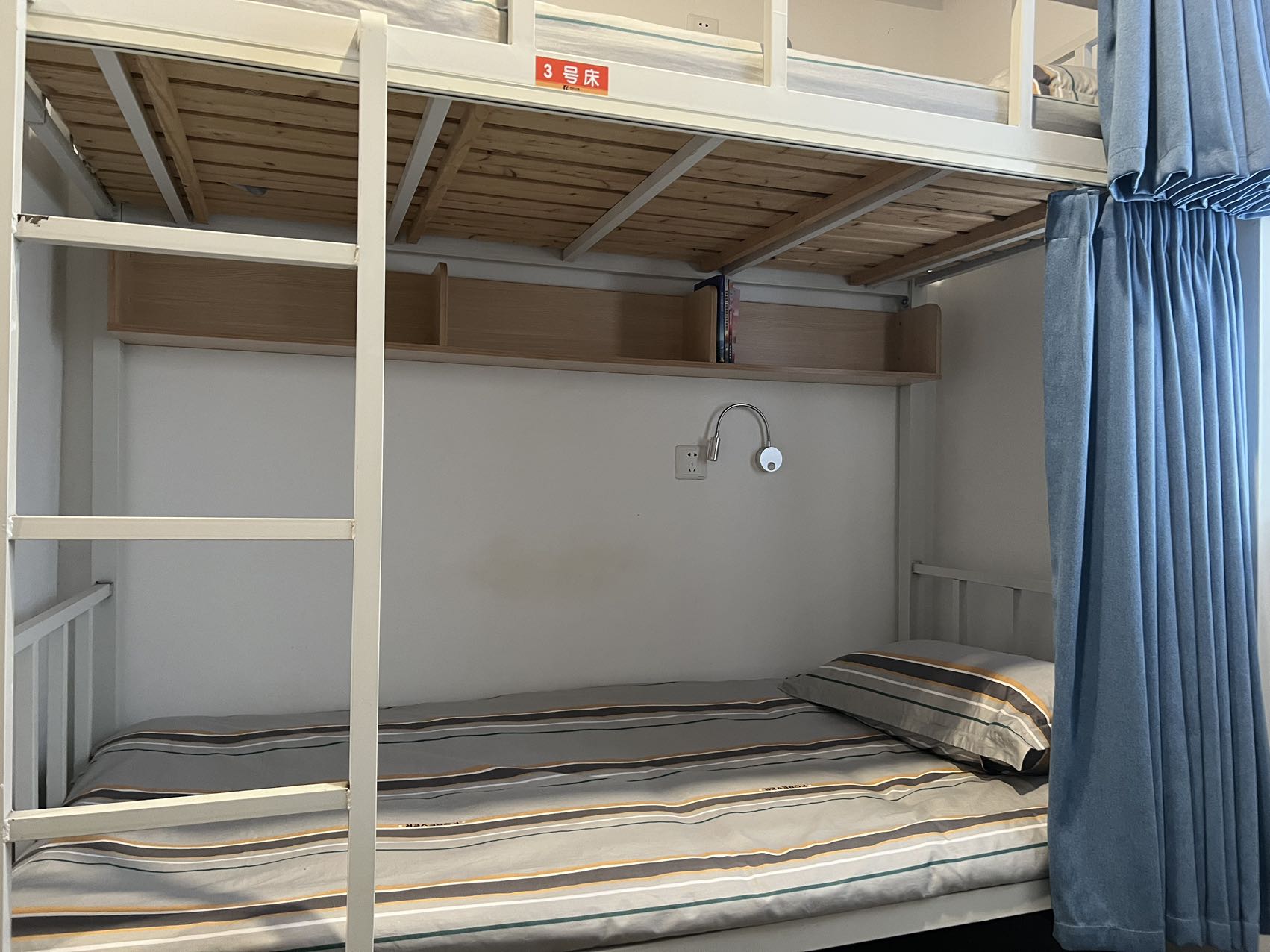 怡辰公寓床铺内有插座、电灯和书架等 澎湃新闻记者 陈斯斯 图