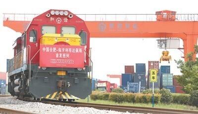 7月29日,满载100个标箱出口货物的X8026次货运列车从铁路合肥北站启程,驶往匈牙利布达佩斯。