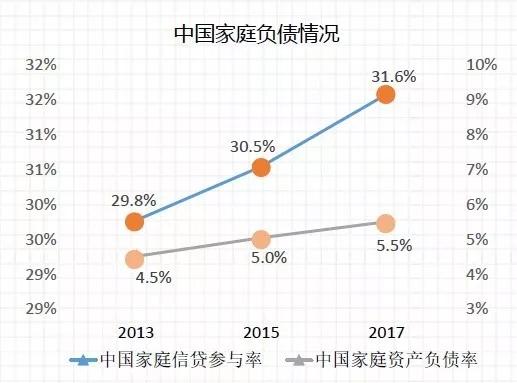 而从负债率本身看,中国家庭债务风险整体处于可控范围,报告显示,中国城镇家庭资产负债率从2013年的4.5%到2015年的5.0%,再增至2017年的5.5%。