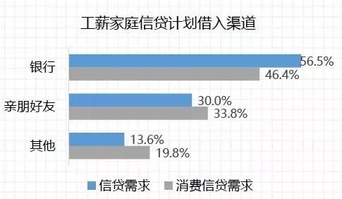 报告显示,排除房贷后,工薪阶层向非银行渠道借款的倾向明显上升,非银行渠道是指亲朋好友和其他渠道(含消费金融公司、网络借贷平台和民间金融组织)。