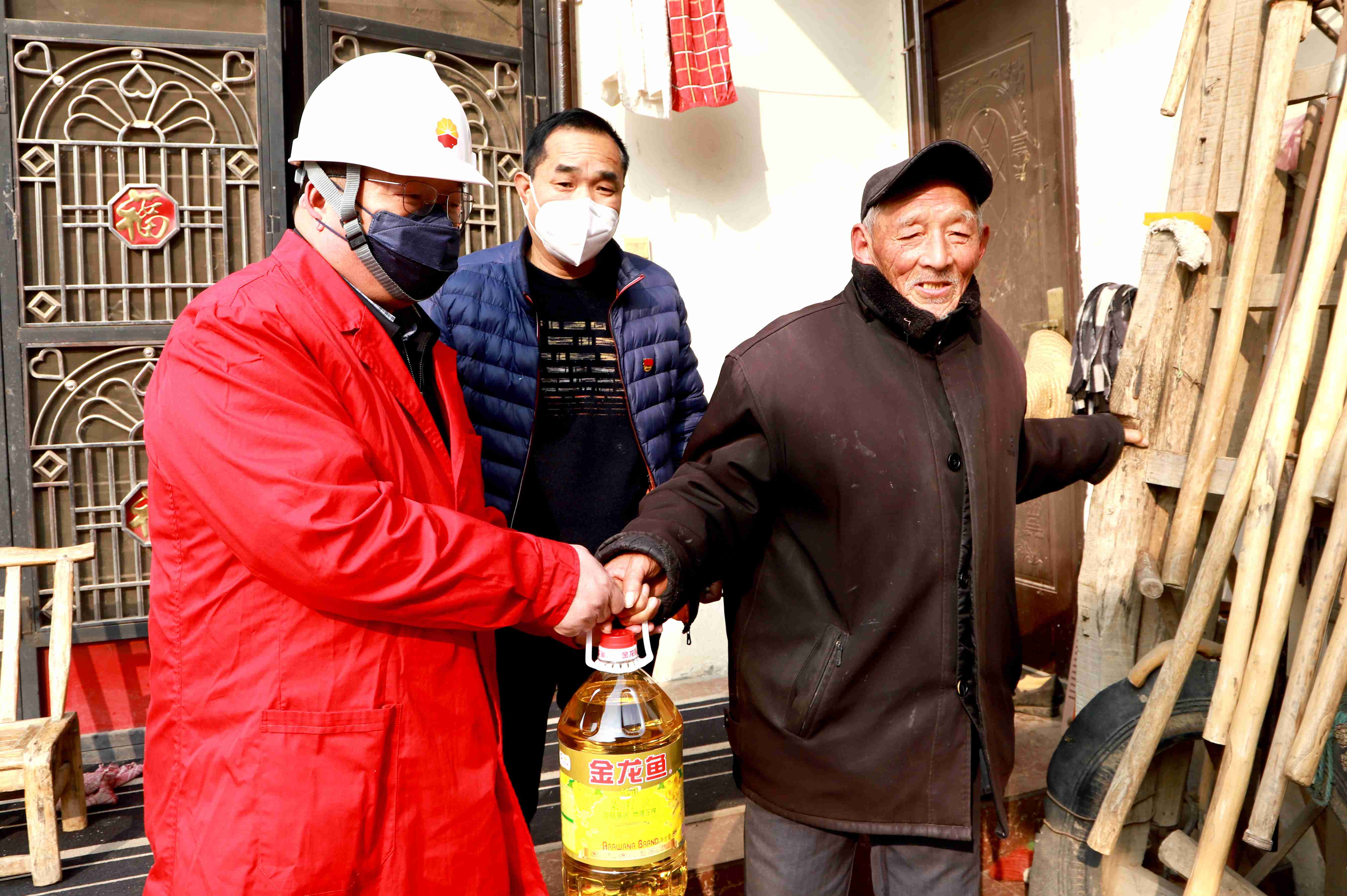 图为疫情期间河南分公司干部员工看望慰问贫困老人。