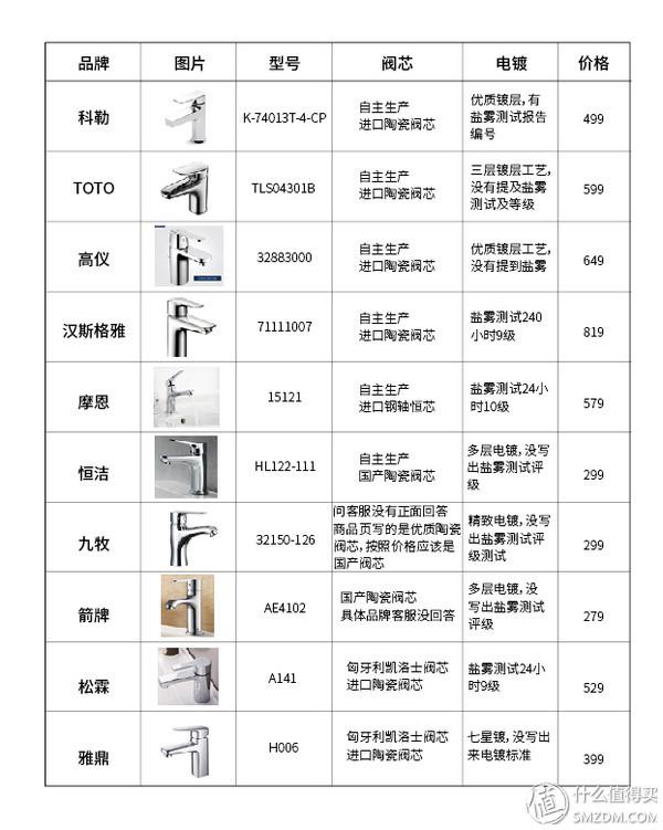 老规矩把这几个品牌款式差不同的面盆龙头价格做一个对比: