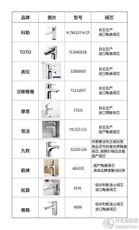 认真的我,把几个知名品牌龙头阀芯(这里选取同款外观的面盆龙头)进行对比,如下: