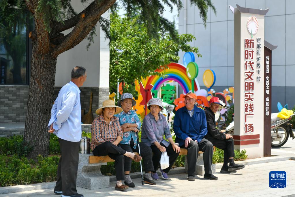 山东省沂源县南麻街道埠下村村民在民生综合体活动广场休息(2022年6月15日摄)。新华社记者 朱峥 摄