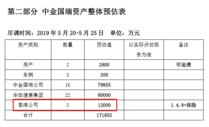 “刚出事时,中金国瑞请了一个号称专业第三方清算公司高盛量子公司,出的资产尽调表显示中金国瑞资产超过17亿元,而未兑付的投资款项仅有9亿多,大家还是有希望的。”G女士告诉记者。