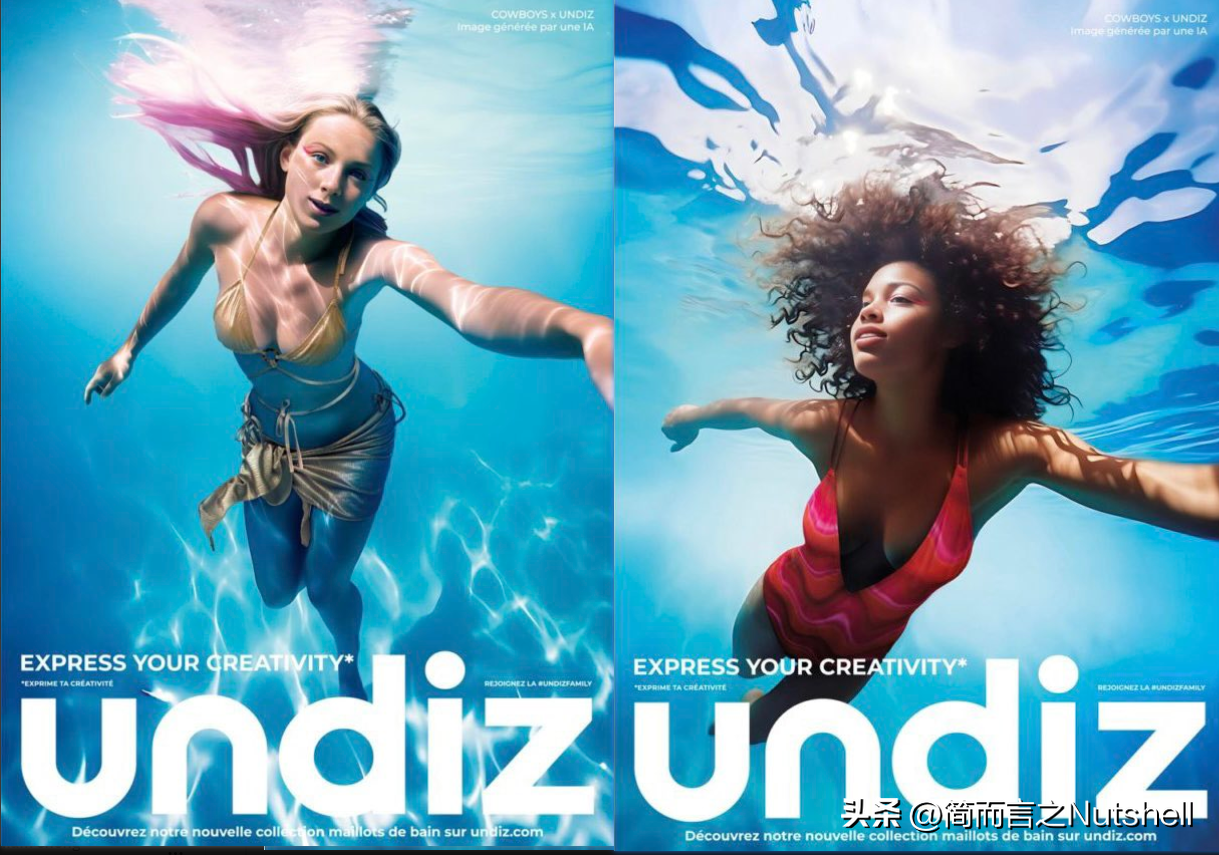 这些模型是由一家广告公司使用图像生成器 Midjourney 创建的,后来添加了泳装的真实图像。