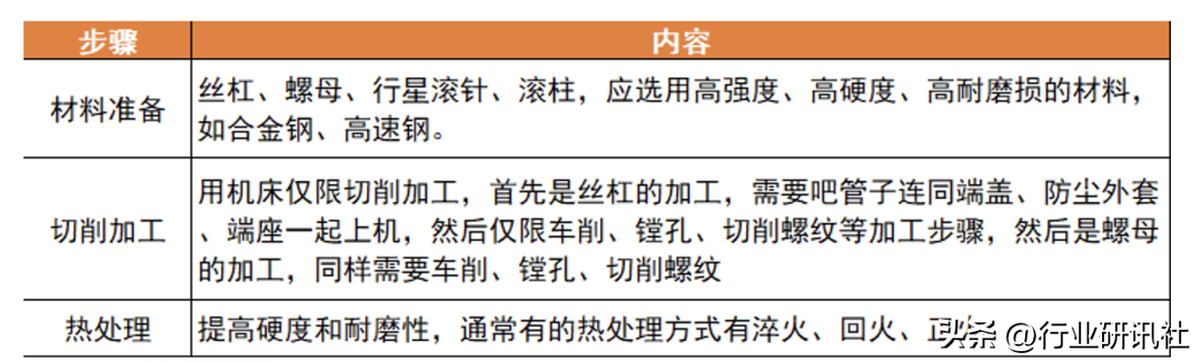 表:行星滚柱丝杠生产流程