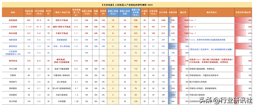 特斯拉目前人形机器人尚未量产,供应商也待定,本文讨论的是有可能进入的供应商,若这些供应商进入特斯拉供应链不及预期,将影响我们的推荐。