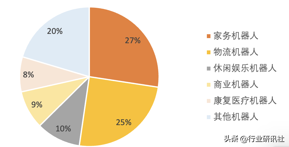 服务机器人下游细分种类较多,分为家务机器人、物流机器人、休闲娱乐机器人、医疗机器人等,应用场景更为多元复杂,整体格局也较为分散。