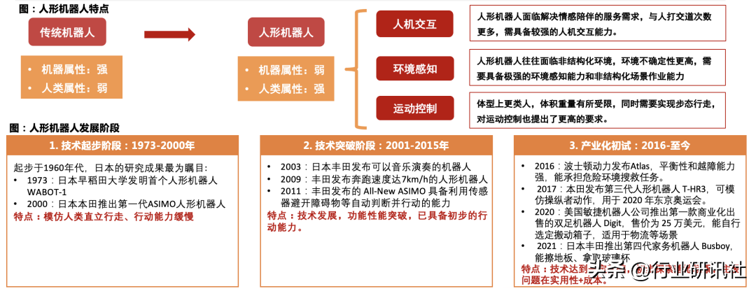 人形机器人从提出到现在已历时50余年,目前已进入产业化初试阶段: