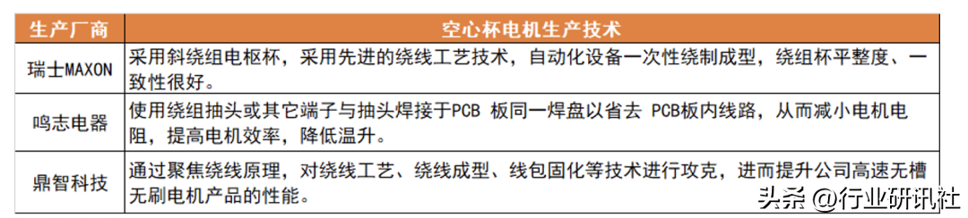 无刷空心杯电机海外以MAXON做的较好,国内鸣志电器、鼎智科技、恒帅股份可做,
