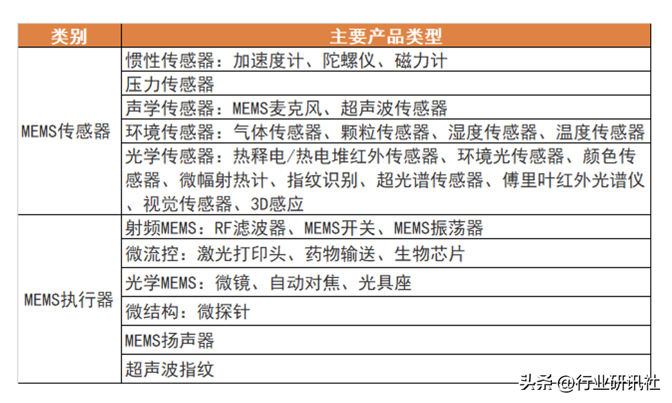 表:MEMS产品类型与市场结构