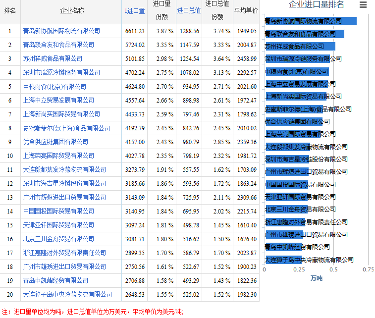 图1 2015年第四季度冻猪腿肉进口企业前20