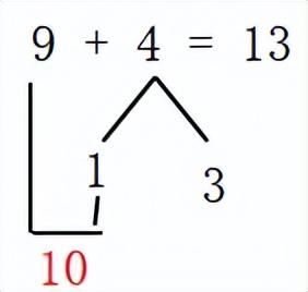 先把4分成1和3,然后1和9凑成10,10加3等于13。