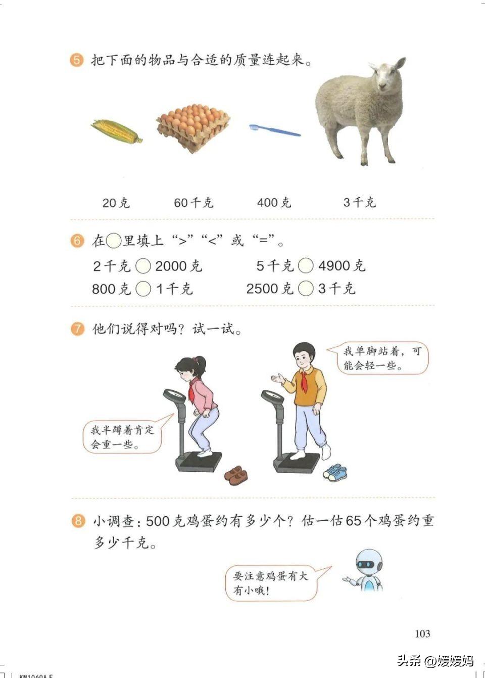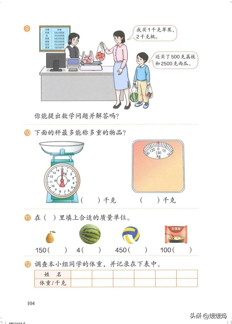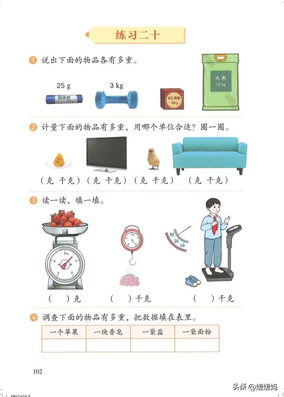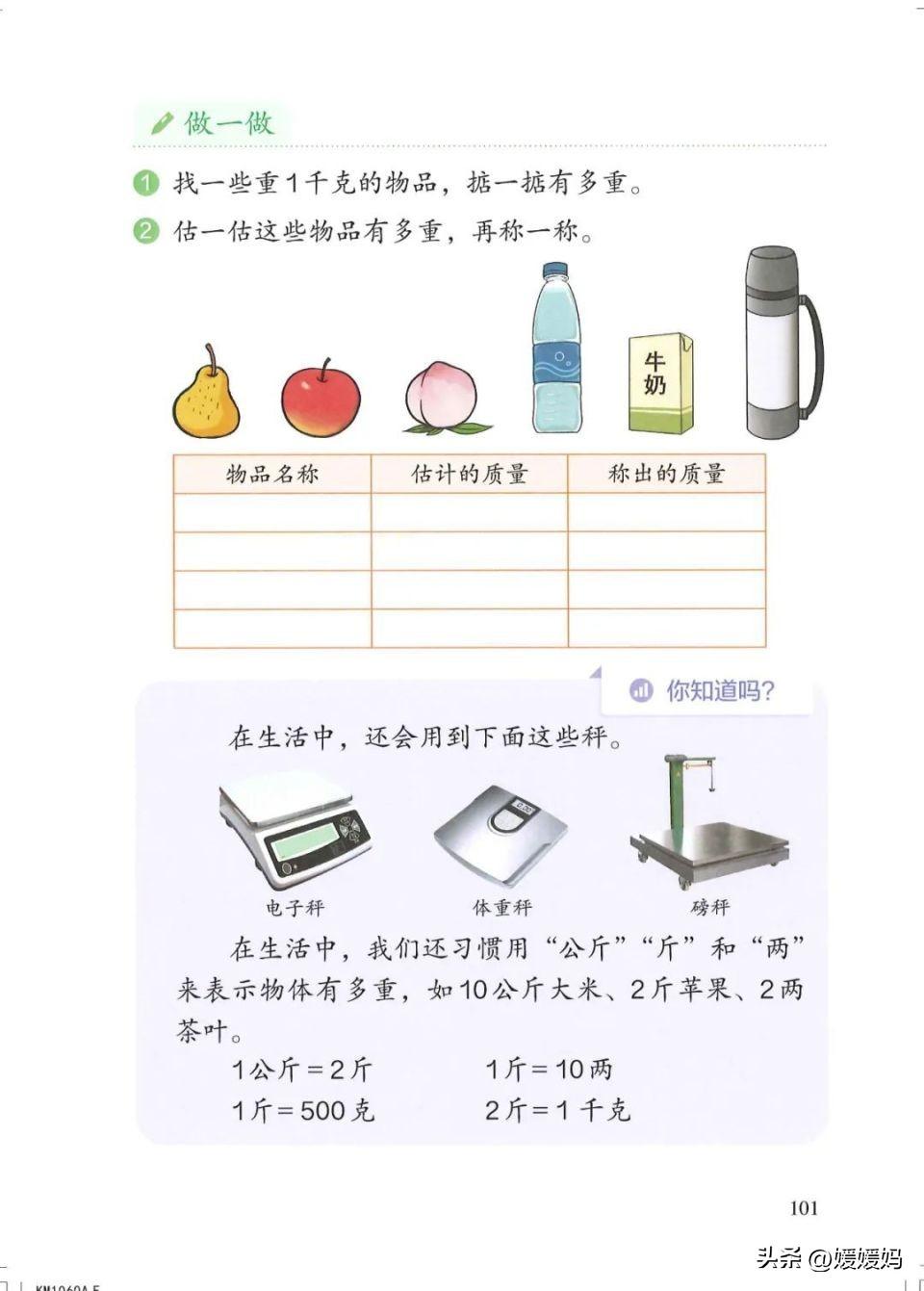 (3)比较重的物品通常用以千克作单位的秤来称。