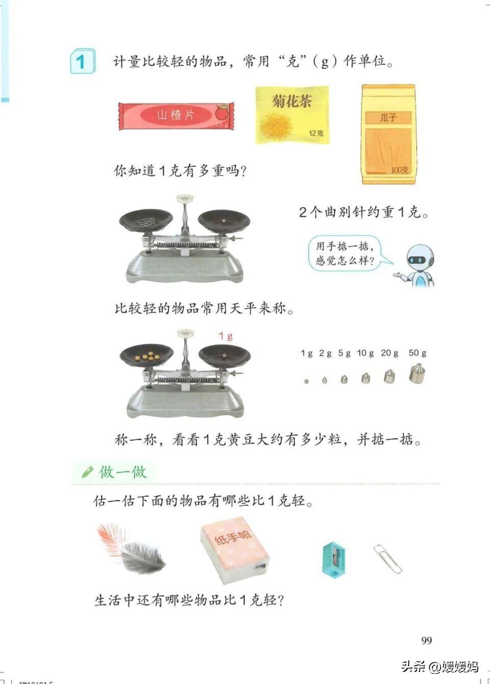 1、认识质量单位克: