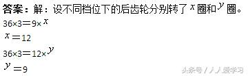 答:不同档位下的后齿轮分别转了12圈和9圈。
