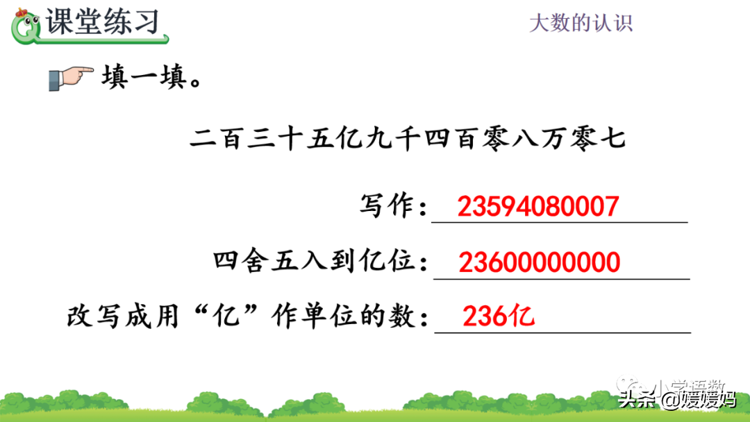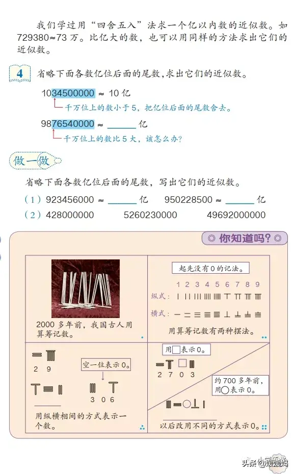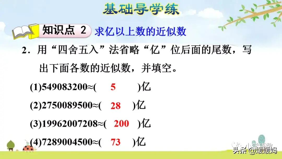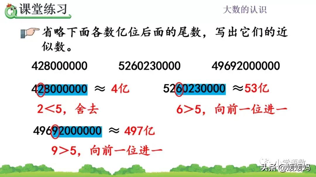 3.用“≈”表示出结果,别忘了加上“亿”字。