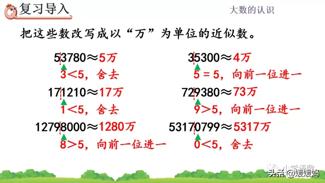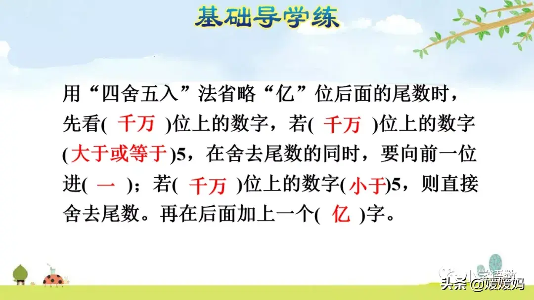 2.根据千万位上的数字,进行“四舍五入”。