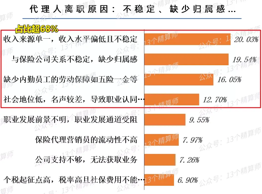因此,再加上,社会地位低、名声差,甚至于公司关系不稳定、缺少归属感等问题,导致代理人陆续离职。