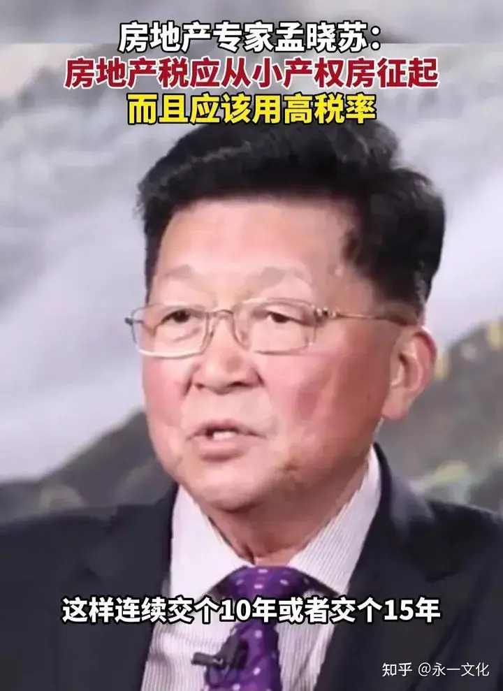 最近,网传有“中国房地产之父”的地产专家孟晓苏再出惊人言论,称:“应该对农民的房子征税,每年10万,连征15年!”此言一出引广大网友热议!