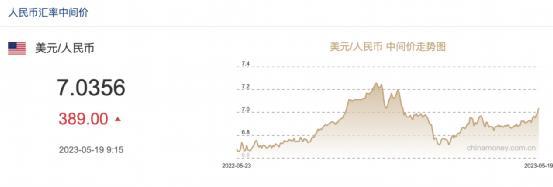 昨日,中国人民银行授权中国外汇交易中心公布,2023年5月19日银行间外汇市场人民币汇率中间价为1美元对人民币7.0356元。最近三个交易日,人民币中间价已下跌850个基点,跌幅超过1.2%。