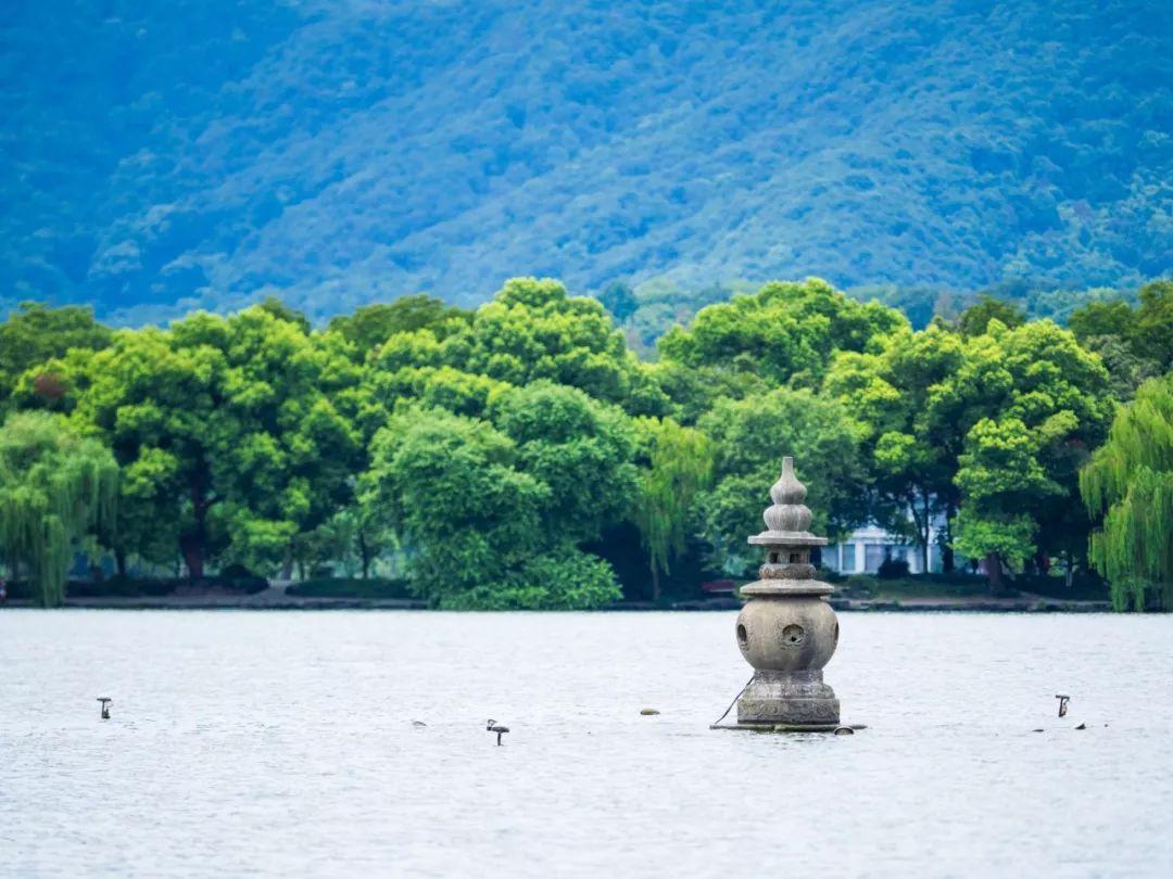 三潭印月是杭州西湖十景之一,与湖心亭、阮公墩鼎足而立合称"湖中三岛",也是西湖中最大的岛屿,湖中的三座小石塔被称为"三潭"。