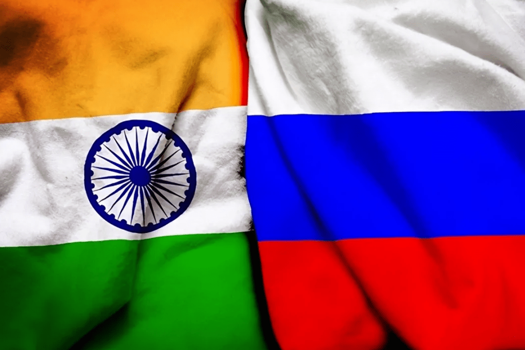 (印度国旗和俄罗斯国旗)