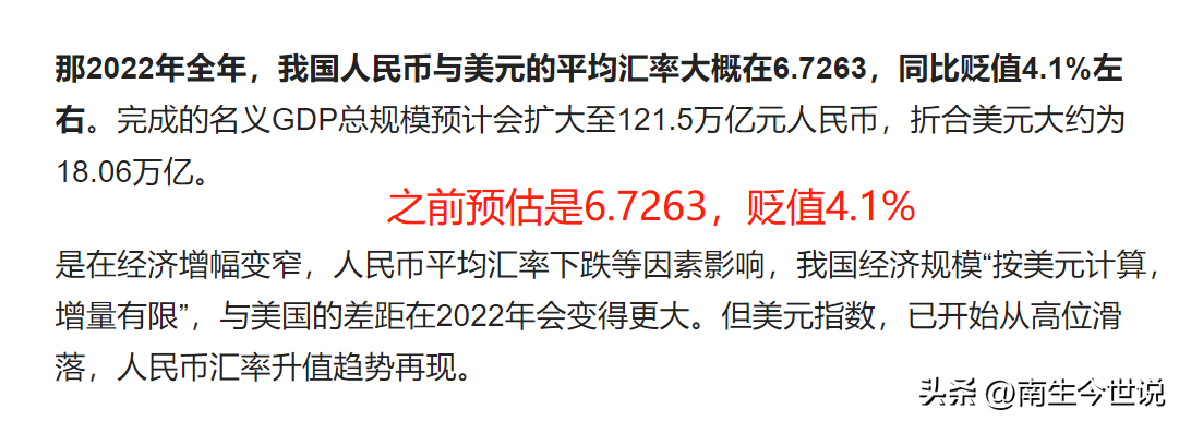 值得一提的是,本文提到的人民币与美元汇率为6.7261,贬值4.08%,指的是“人民币与美元的2022年平均汇率”,并非是部分网友们习惯的“今年以来的汇率跌幅计算方式”。