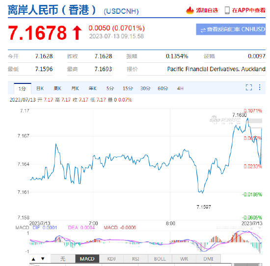 7月13日,人民币中间价报7.1527,上调238点,升幅创2023年3月24日以来最大。上一交易日中间价报7.1765,在岸人民币上一交易日收报7.1899。