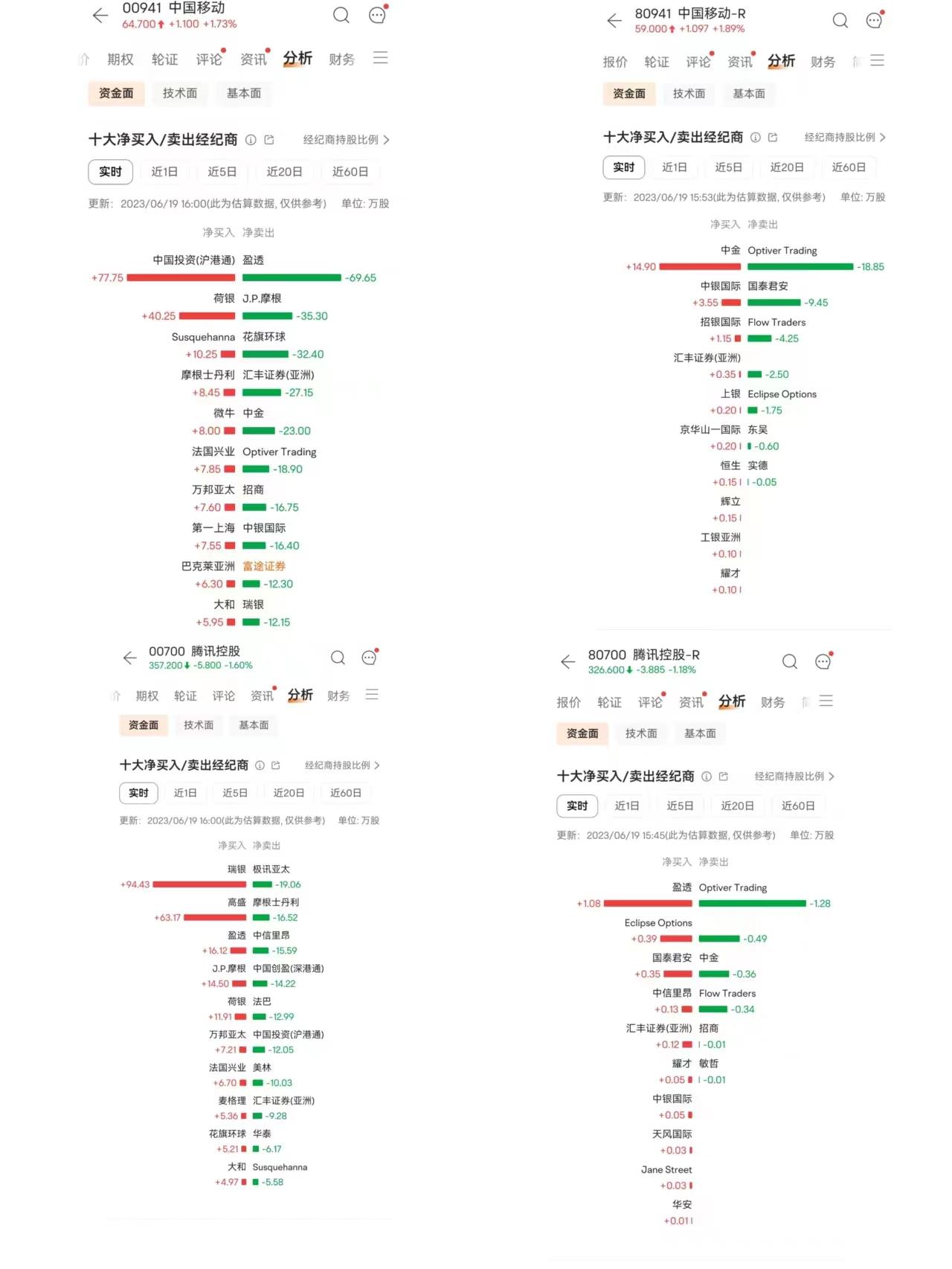另外,腾讯及中移动港币及人民币交易的经纪商也大为不同。