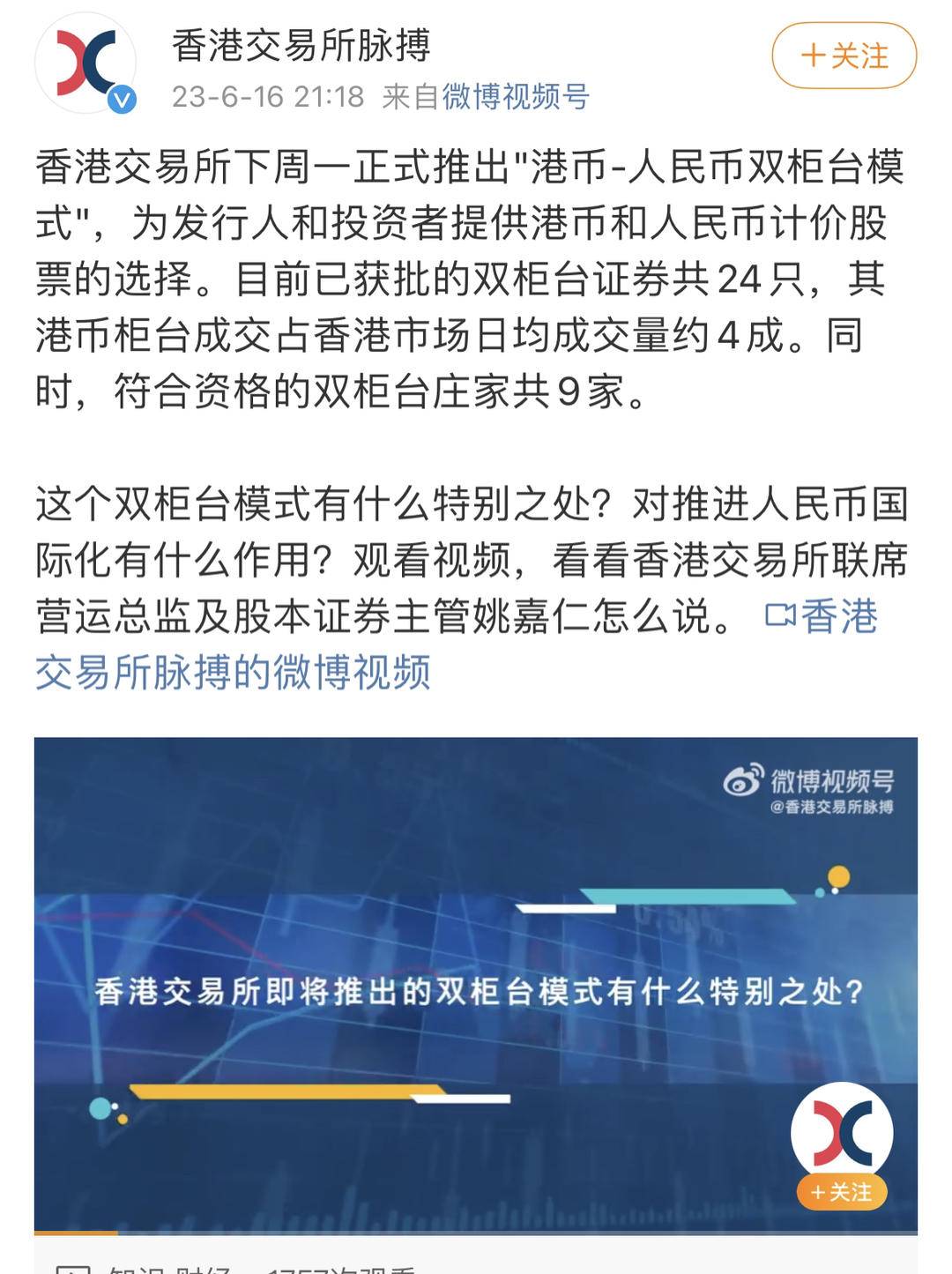 继2023年6月17日推出前测试成功完成后,香港交易所宣布港币-人民币双柜台模式于6月19日推出。