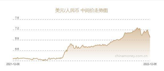 金融界12月6日消息 今日人民币兑美元中间价报6.9746元,较上一交易日(12月5日)的7.0384元上调638个基点。