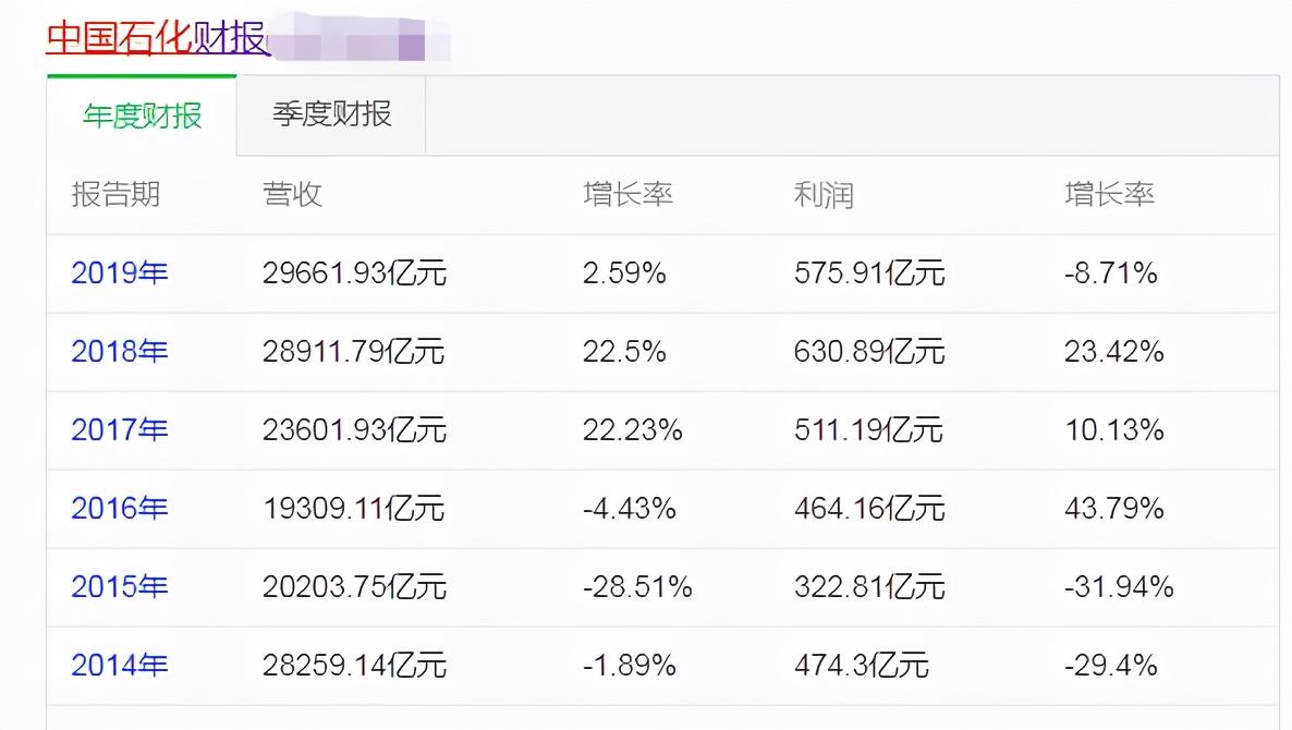 首先我们看看中石化的财务报表,最少的2015年,利润都有322.81亿元