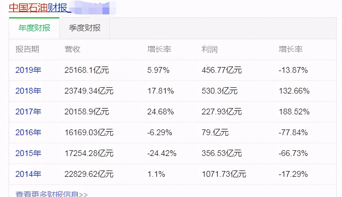 中石油的财务报表显示利润最少的2016年都有79亿元。