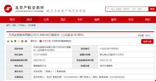 日前,北京产权交易所信息显示,中国石油化工集团有限公司挂牌转让九州证券3.7亿股股份(占总股本10.98%),转让底价为5.14亿元。相比一年半前4.74亿元的挂牌价,价格涨约4000万。