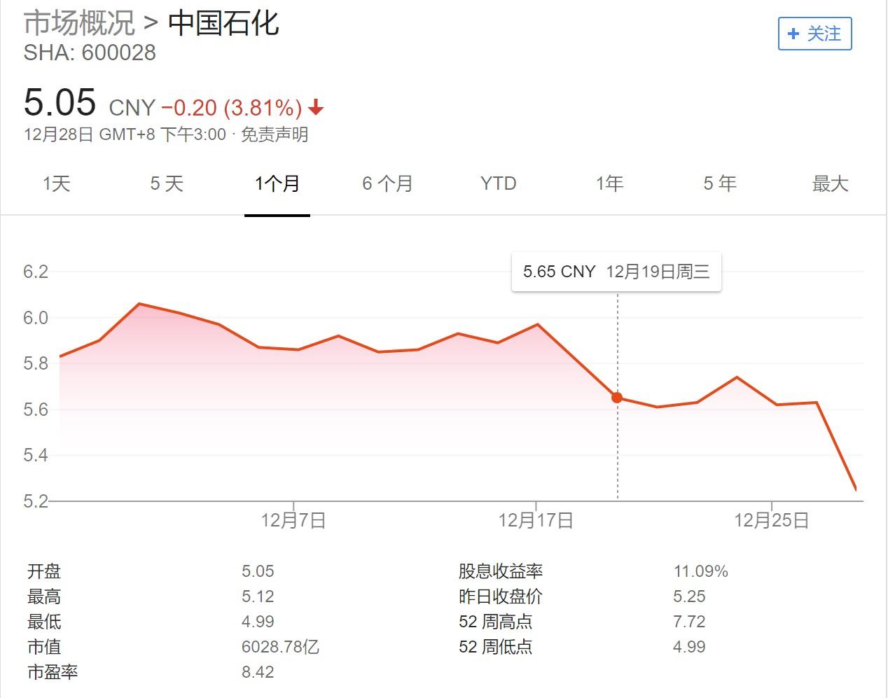 ,曾经被股评人称为确定性套利的中石化,近期却遭遇市值大跳水。27日下午A股开盘后中国石化股价一路走跌,截止收盘时下跌6.75%,市值损失逾362亿元。28日,中石化延续跌势,A股收盘跌3.81%,两市净流出30亿。