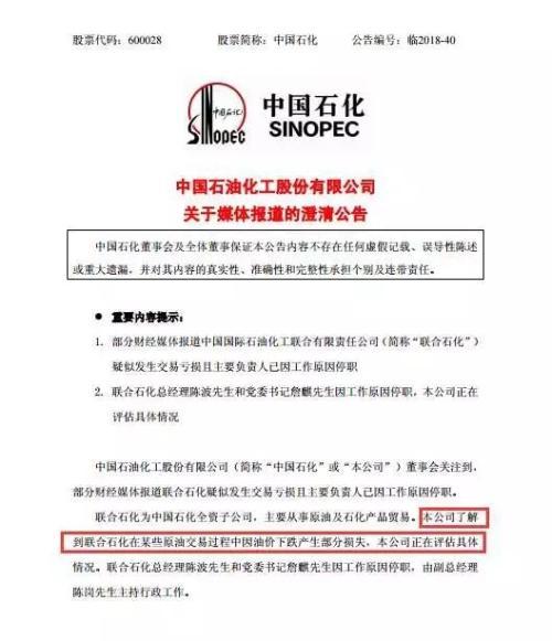 从这则公告来看,不仅确认了两高管停职的事实,还确定了因油价下跌导致亏损的事实,只是对一些细节以及亏损数额,没有做出具体的披露。