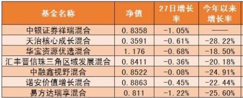 据统计,石油主题基金中,有9只为权益类基金,27日净值增长率均为负。从持股来看,截至三季度末,中银证券祥瑞混合、华宝资源优选混合和天治核心成长混合3只基金,前十大重仓股中均包括中国石化。
