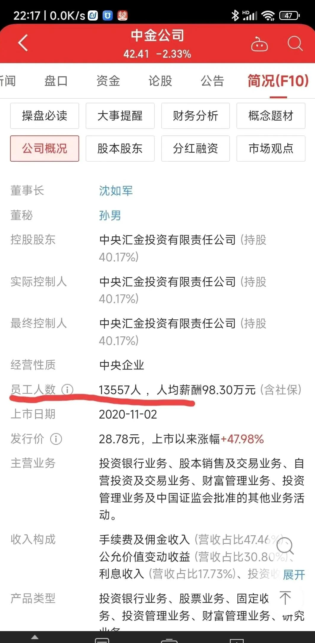 这就是为什么中金公司的员工平均工资可以达到80万元,而中石油的员工平均工资只能达到2万元多的原因。