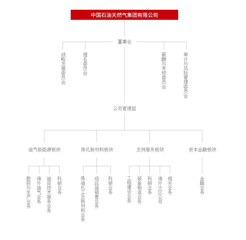 中石油设有董事会,董事会可以任命公司管理层,也设有战略发展委员会,提名委员会,薪酬与考核委员会和审计与风险管理委员会。公司管理层按照油气新能源板块、炼化新材料板块、支持服务板块和资本金融,分别进行管理。其中,油气新能源板块包含勘探与生产业务,海外油气业务,油田技术服务业务和科研业务;炼化新材料板块则包括炼油化工及新材料业务,成品油销售业务,科研业务。支持服务板块,包括工程建设业务,装配制造业务,科研业务,以及海外大区公司相关业务;资本金融板块则只有金融业务。中石油每一个板块,业务量都非常庞大,这里我们重点介绍一下