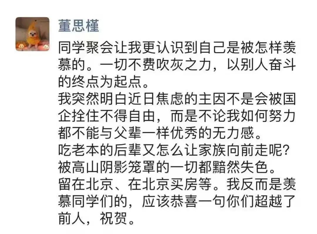 董女士曾经朋友圈的发文,陶醉在自己人生赢家的快乐中,曾经被同学羡慕的大赢家,此时,命运发生了戏剧性的变化,看看她的朋友圈发文: