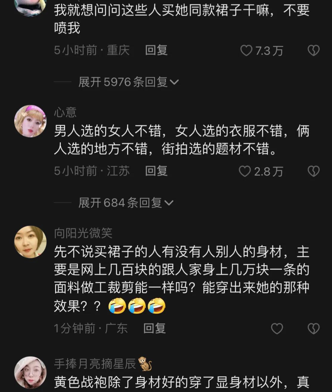 让人不解的是,董女士的同款旗袍价格曝光,某平台同款500多元,目前据说订购量大增到800套,很多网友纳闷,怎么这么有钱的人,穿的衣服才500多元,和她手上提的包包很不匹配!