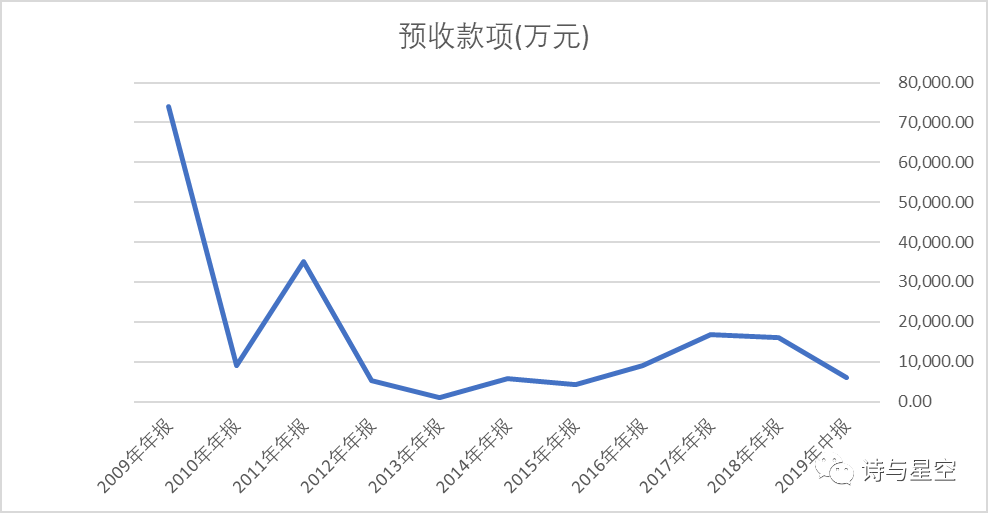 2019年半年报中,预收账款不足2018年年报的三分之一,金额降低了10.08亿。