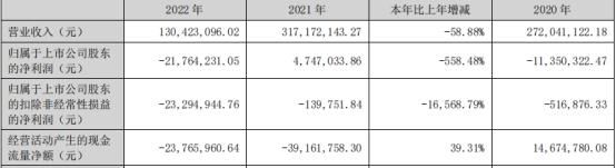 中科云网2022年年度报告显示,2022年,中科云网营业收入1.30亿元,同比下降58.88%;归属于上市公司股东的净利润-2176.42万元,同比下降558.48%;归属于上市公司股东的扣除非经常性损益的净利润-2329.49万元,同比下降16568.79%;经营活动产生的现金流量净额-2376.60万元。
