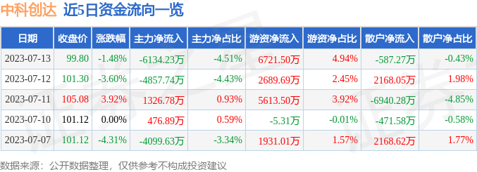 7月13日的资金流向数据方面,主力资金净流出6134.23万元,占总成交额4.51%,游资资金净流入6721.5万元,占总成交额4.94%,散户资金净流出587.27万元,占总成交额0.43%。