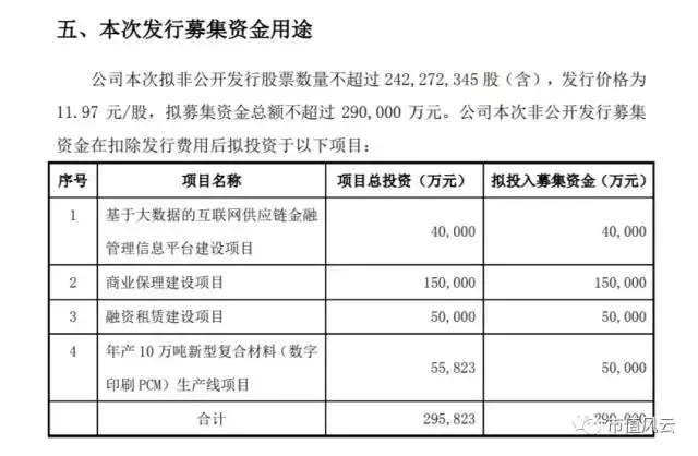 而经过与监管部门的五次拉锯战后的定增方案,从项目投向来看,为了达到过会目的,中科新材硬生生把与金融相关的项目打掉咽进肚里,说不出来了,筹资规模也小的可怜,是并购方案1.0版本的零头。