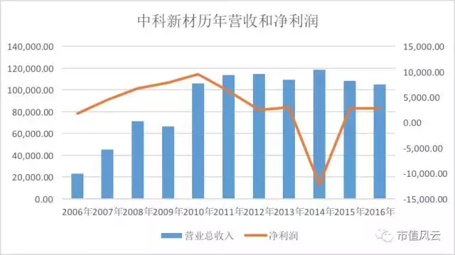 2015年中科新材实现营收10.82亿元,同比减少8.65%;