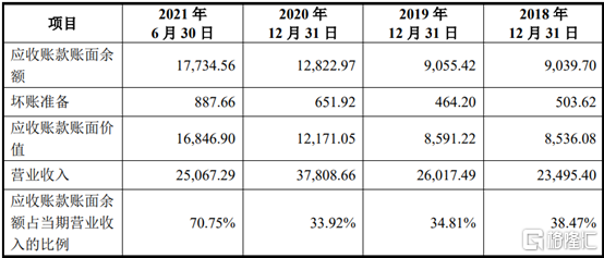 2018年至2021上半年公司应收账款情况,图源,招股书